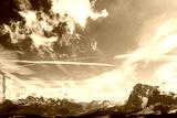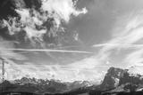 Panoramic view from the Seiser Alm to the Dolomites in Italy, drone shot.