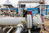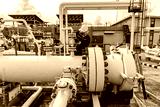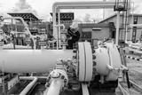 Male worker inspection and measurement thickness pipeline oil and gas at check record pipeline