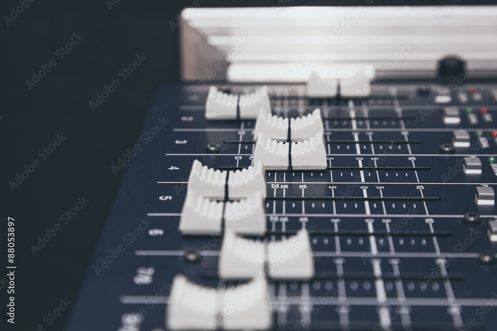 Sound Music mixer control Buttons equipment close up