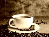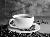 Coffee cup and coffee beans on gray background, Black coffee cup aromatic