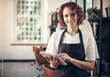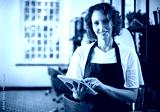 Hair salon, portrait and woman with tablet at work for client, appointment and booking information. Small business, stylist and person with tech in spa for online, portfolio or beauty tips on website