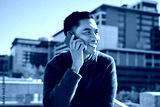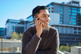 Smiling Urban Professional Talking on Mobile Phone Outdoors in City