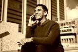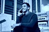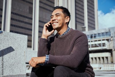 Young Entrepreneur Smiling While Talking on Mobile Phone in Urban Setting