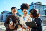 Diverse Group of Entrepreneurs Collaborating in Urban Setting