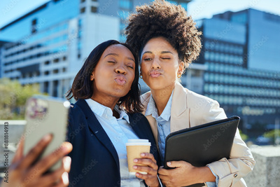 Diverse Entrepreneurs Taking a Selfie in Urban Setting with Coffee and Laptop