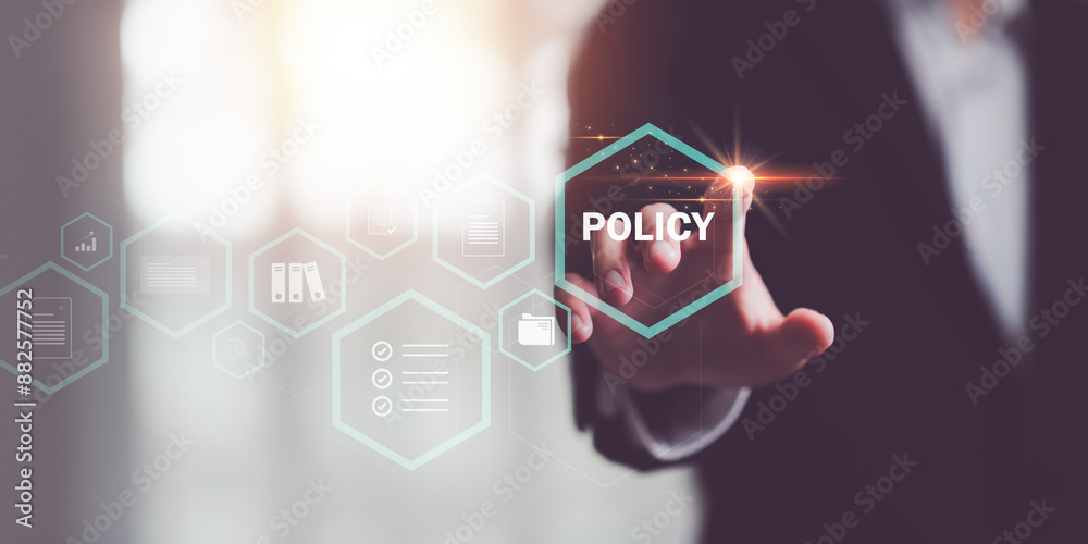 Accountant showing office document auditing concept ,checkboxes Concepts of practices and policies ,company articles of association Terms and Conditions.,plan review process and assess correctness
