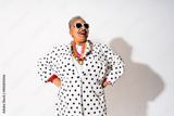 Colorful portrait of funny senior black woman wearing stylish clothing isolated in studio - Cool modern old female adult, concepts about elderly, senior people and body positive