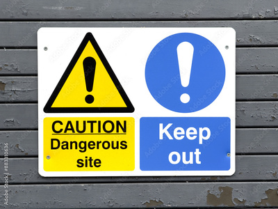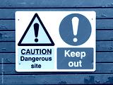 Construction site keep out sign on fence