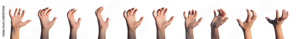 Grabbing, grasping, catching, holding and taking gesture set. Kids hands with something invisible isolated on white background.., transparent PNG