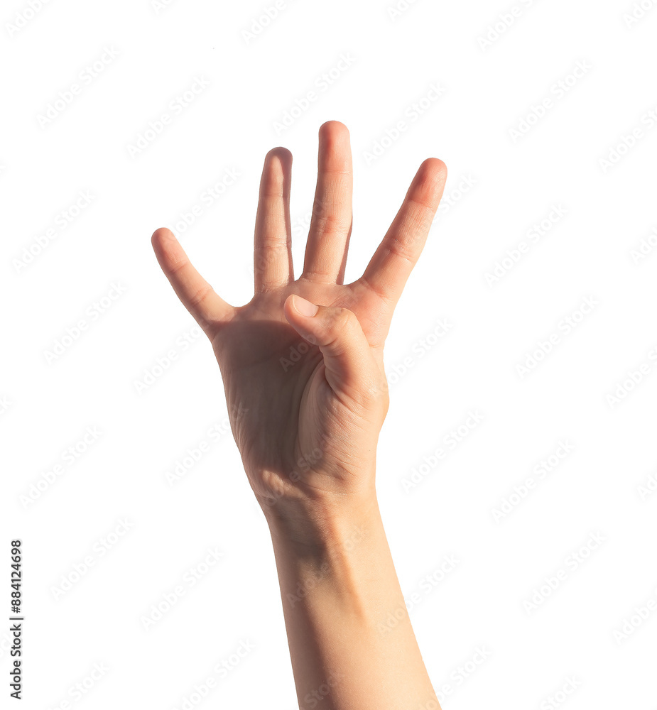 Four, hand gesture, kids sign. isolated on white background.., transparent PNG