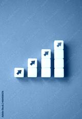 Growing graph made of blocks and up arrows. Steps of growth. Enlargement and growth concept. Career, economics. Statistics and news. Skills and self-development.