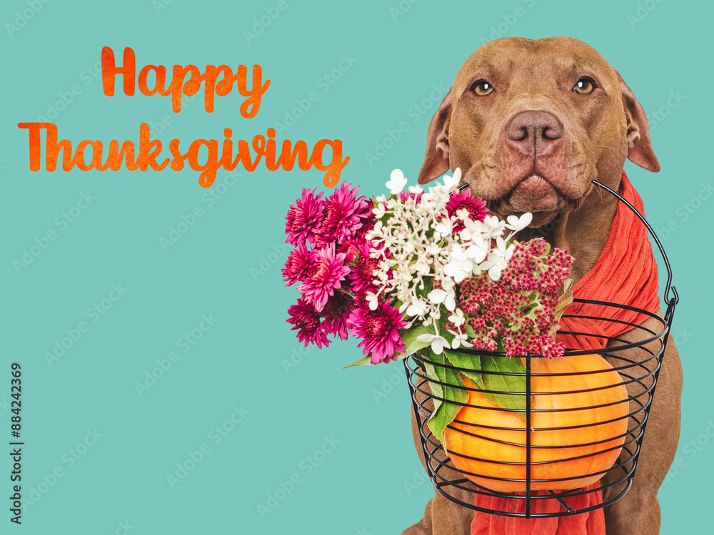 Happy Thanksgiving. Lovely brown puppy. Close up