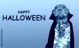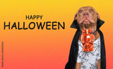 Happy Halloween. Charming dog and Count Dracula costume.