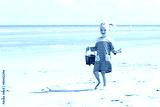 Cute active child playing on sandy beach. Happy little girl enjoying summer holidays on a sunny day. Family with young kids on vacation at the North Sea coast.