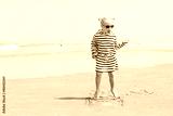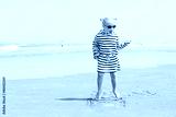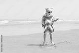 Cute active child wearing pink sunglasses playing and running on wide sandy beach. Happy little girl enjoying summer holidays on a sunny day. Family with young kids on vacation at the North Sea coast.
