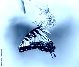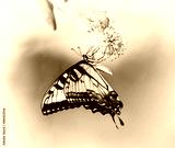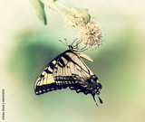 Eastern Tiger Swallowtail butterfly (Papilio glaucus) on buttonbush flowers. Vintage filter effects.