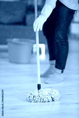 team of professional janitors in uniform cleaning office
