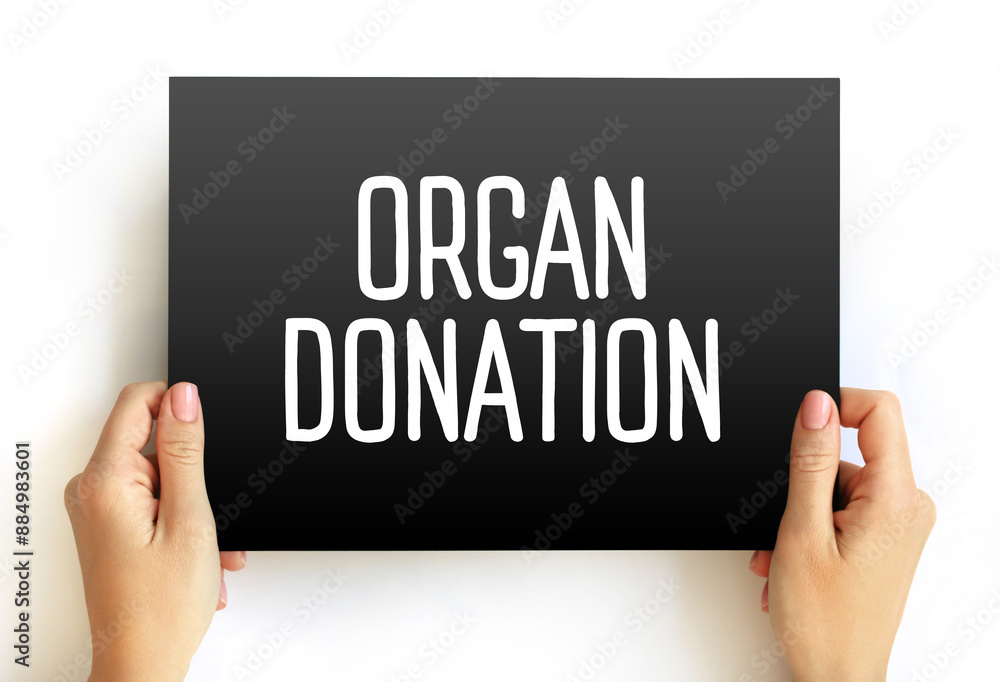 Organ Donation - process of surgically removing an organ or tissue from one person and placing it into another person, text concept on card