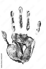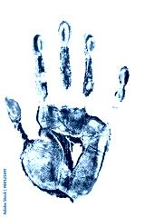 Handprint or hand print one single in purple paint isolated on white background photo