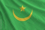 Mauritania flag depicted on folded wavy fabric of old cloth close up