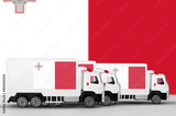 Malta flag depicted on side wall of white delivery van close up. Shipping and local delivery concept