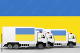 Ukraine flag depicted on side wall of white delivery van close up. Shipping and local delivery concept