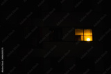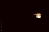 A window in a building is lit up by the sun. The room is dark and the window is the only source of light