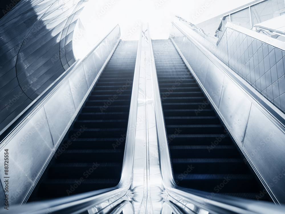 Escalator of Modern building Blue toned images