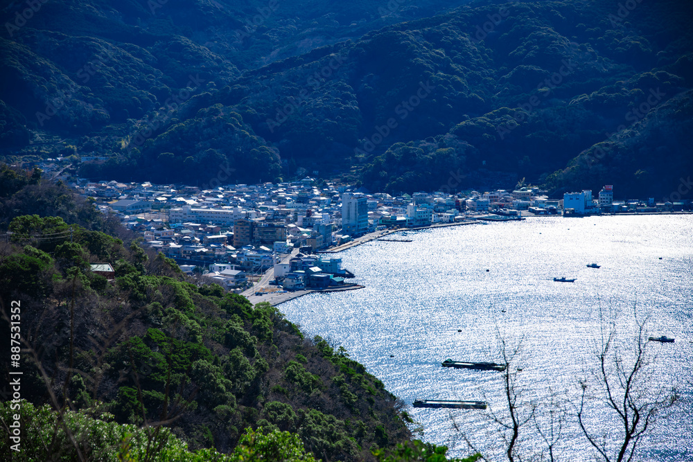 A high angle view of Heda port in Numazu Shizuoka telephoto shot