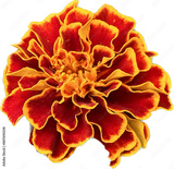 Close-Up of Marigold (Tagetes) Flower with Vibrant Red and Yellow Petals on Transparent PNG Background