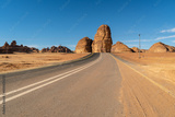 Al Ula, Saudi Arabia: Point of view of a car driving on the road through the Al Ula area, famous for its archeological sites in the desert of Saudi Arabia.