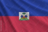 Haiti flag depicted on folded wavy fabric of old cloth close up
