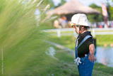 Toddler taking a walk in the green meadow,Toddler taking first steps in a park