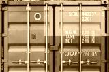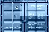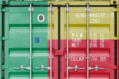 Benin flag depicted on metal doors of shipping cargo container outdoors in docks area close up