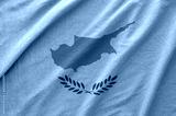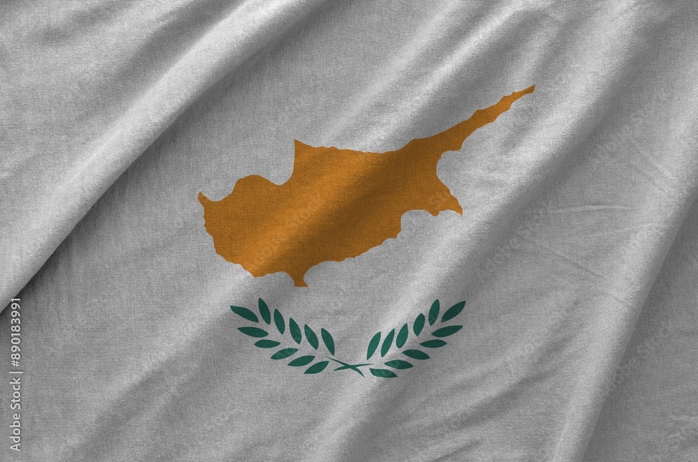 Cyprus flag depicted on folded wavy fabric of old cloth close up