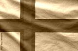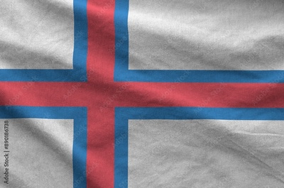 Faroe islands flag depicted on folded wavy fabric of old cloth close up
