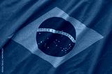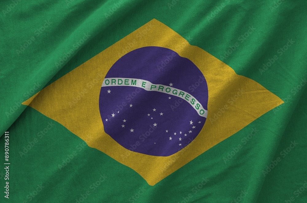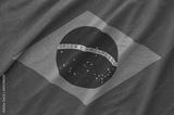 Brazil flag depicted on folded wavy fabric of old cloth close up
