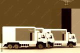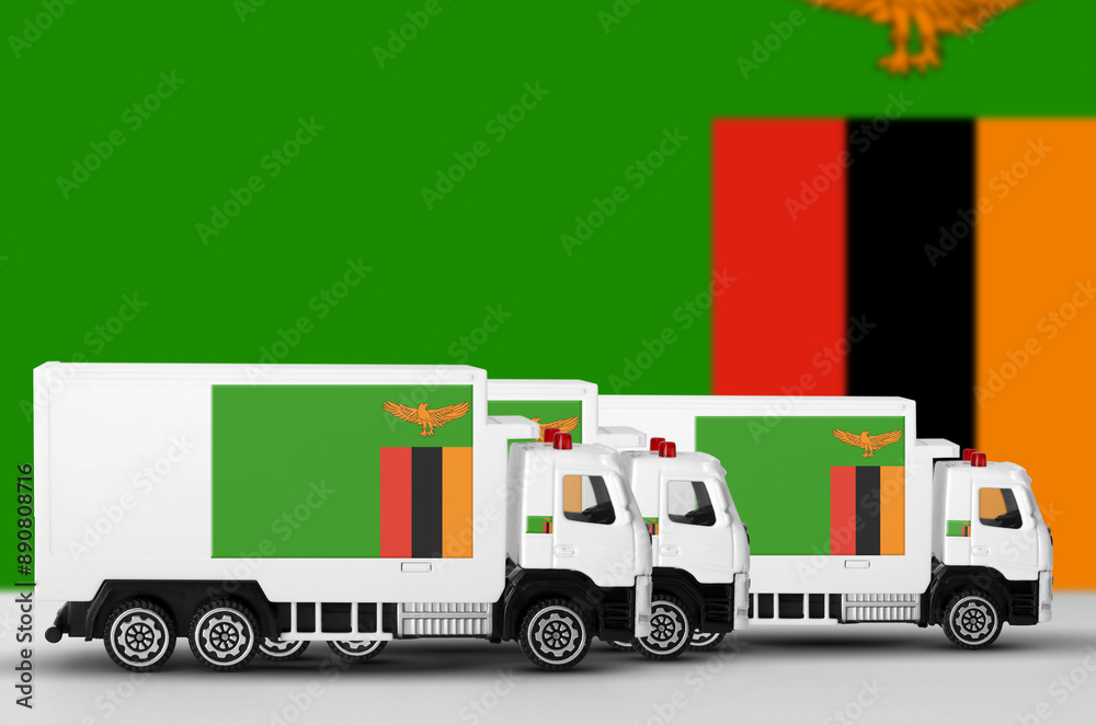 Zambia flag depicted on side wall of white delivery van close up. Shipping and local delivery concept