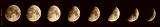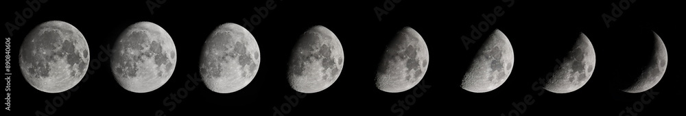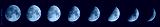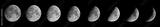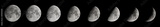 Set picture of moon phases in dark, waxing and waning crescent in period of 24 hours