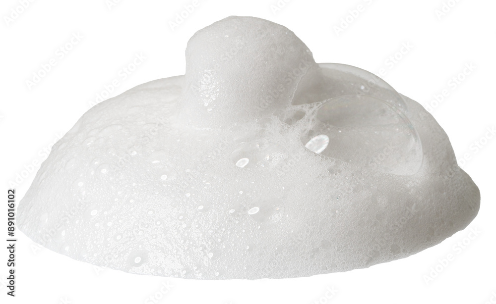 white liquid foam from soap or shampoo isolated with clipping path on background. set of detergent shower gel bubble, white foam bubbles.