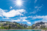 Breathtaking View Over Lünersee with Jagged Peaks and Vibrant Sky