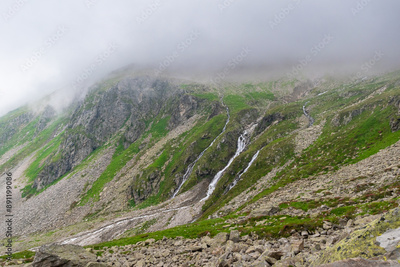 Dramatic Waterfall Cascading Down a Rocky Slope in the Zillertal