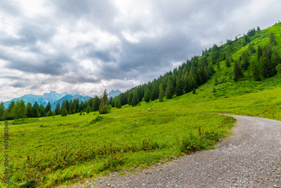 Peaceful Hiking Path Through Lush Green Meadows in Vorarlberg
