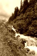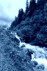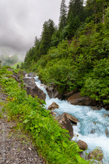 Serene Alpine Landscape with Lush Vegetation and Zemmbach Waterfall