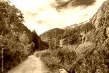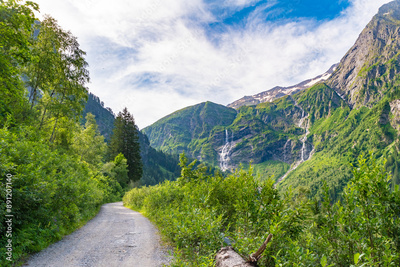 Serene Alpine Landscape with Lush Vegetation and Zemmbach Waterfall