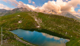 Serene Mountain Lake: Golden Hour and Lush Meadows (Trentino, Italy)