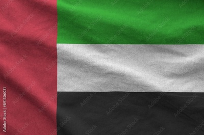 United Arab Emirates flag depicted on folded wavy fabric of old cloth close up