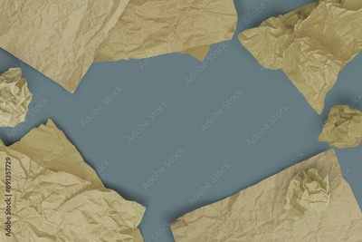 Paper pieces, scraps. Colored cardboard texture background with empty copy space for design.