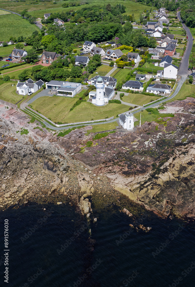 Aerial view of Toward Point Lighthouse near Dunoon in Argyll and Bute