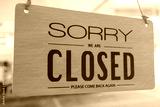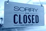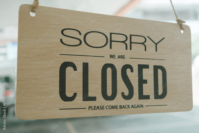 Sorry we are closed sign hanging outside a restaurant on coffee shop.